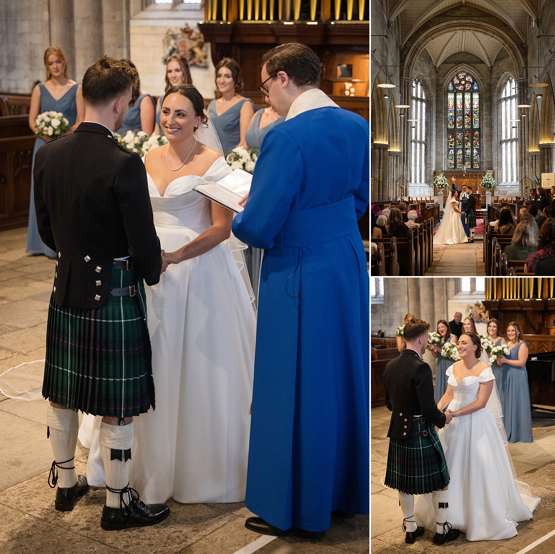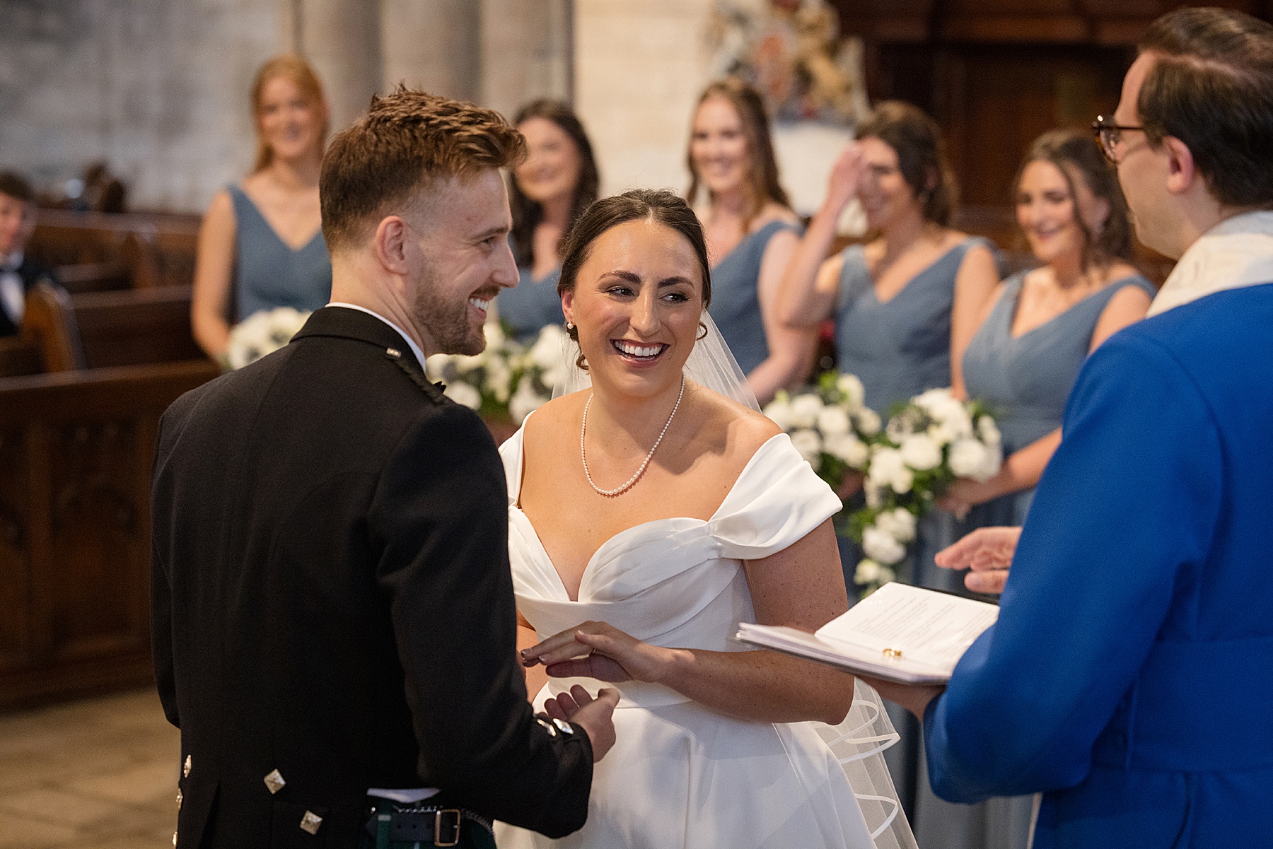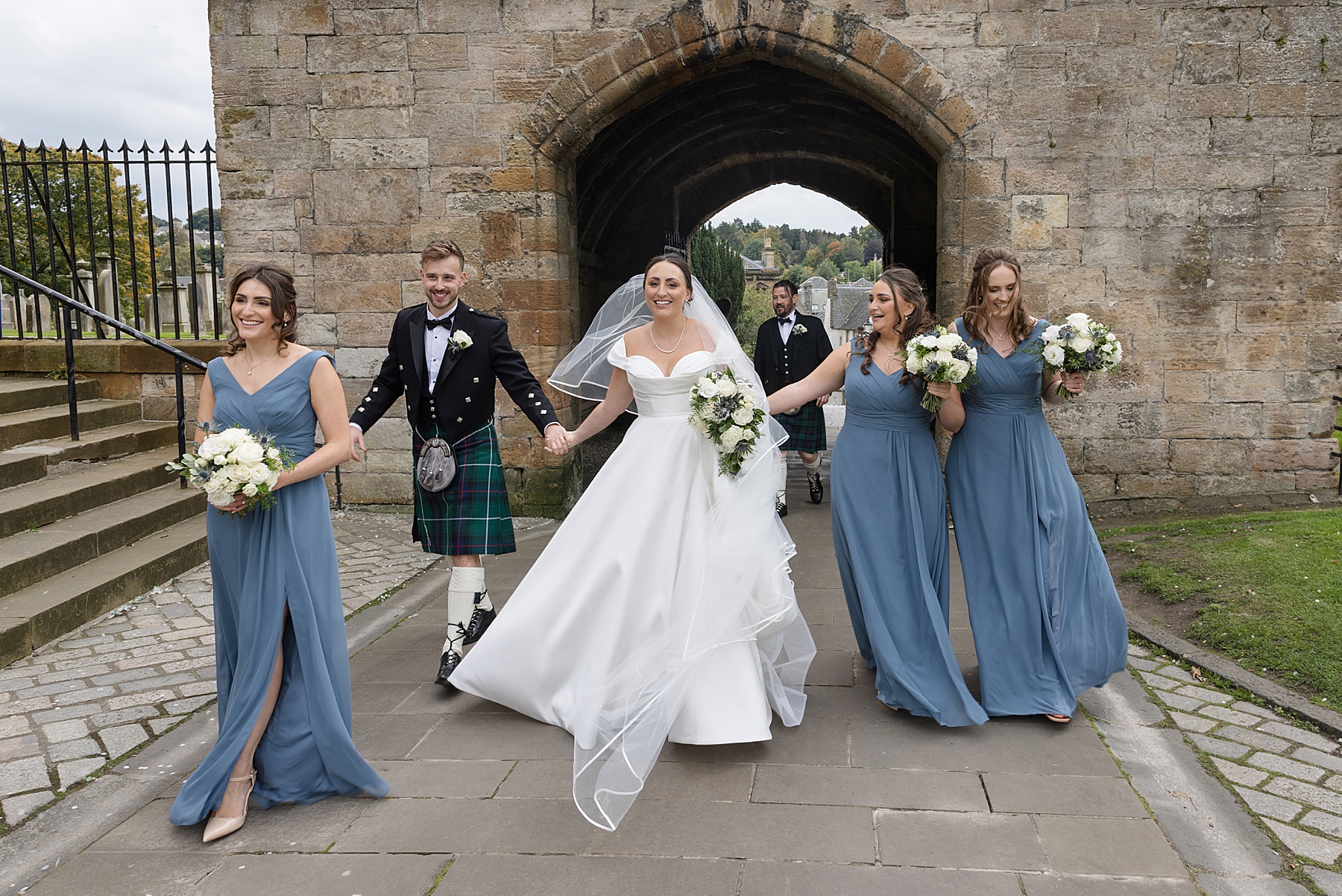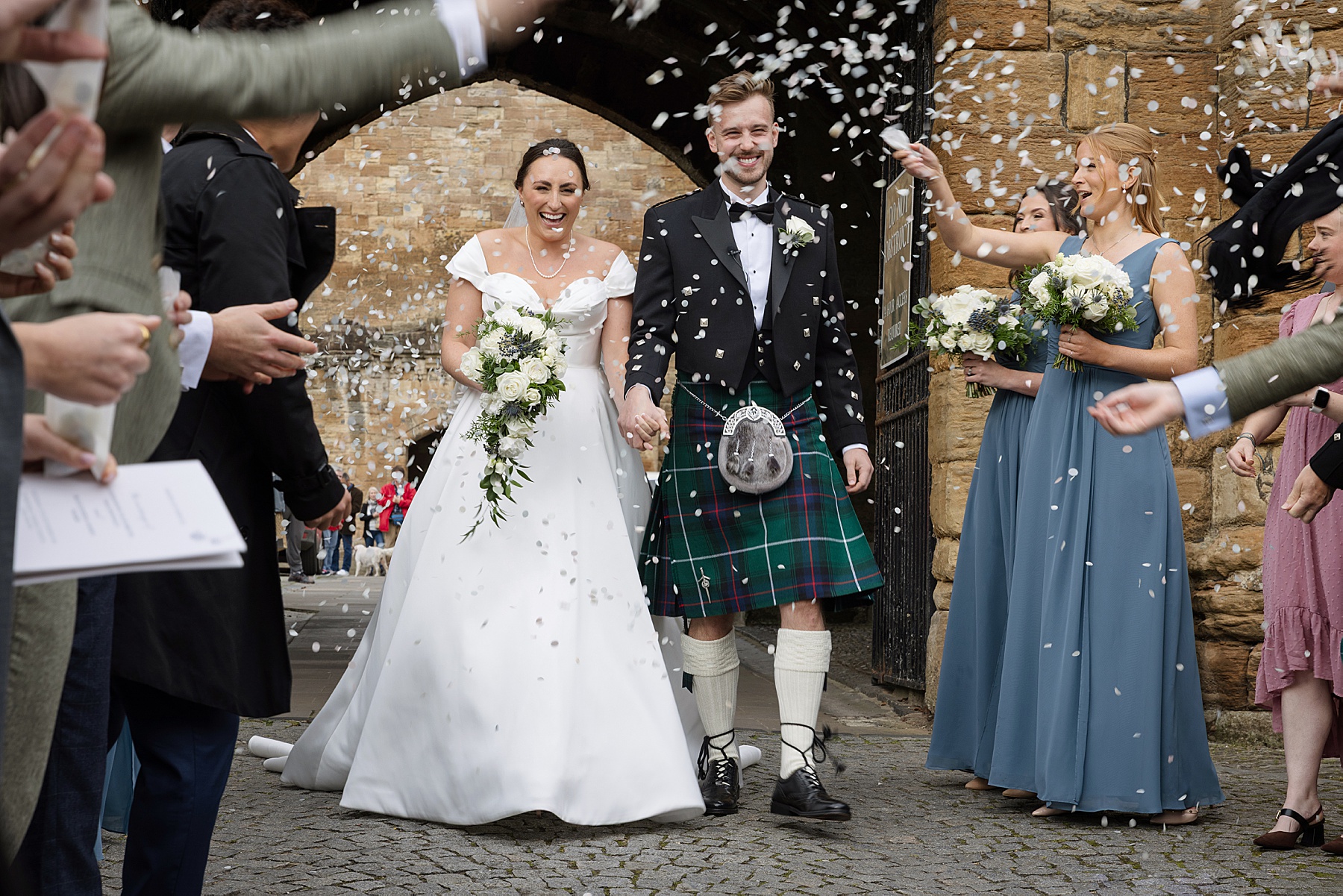 There were so many thoughtful personal touches throughout the day and family were at the heart of it all. Cat carried her Granny’s special-occasion hanky and wore Alex’s Grandma’s brooch . Sisters — Sarah, Eilidh, Megan, and Hannah — gave readings in the church (and also choreographed some epic dance moves!) while mums, Jennifer and Kay, stood proudly as witnesses.