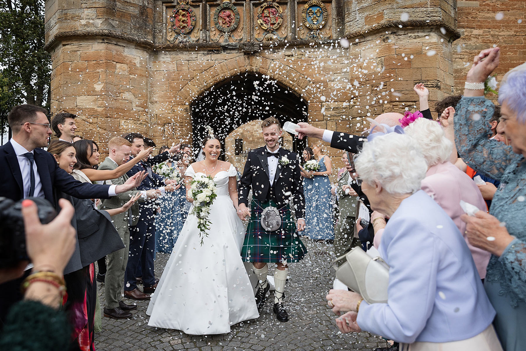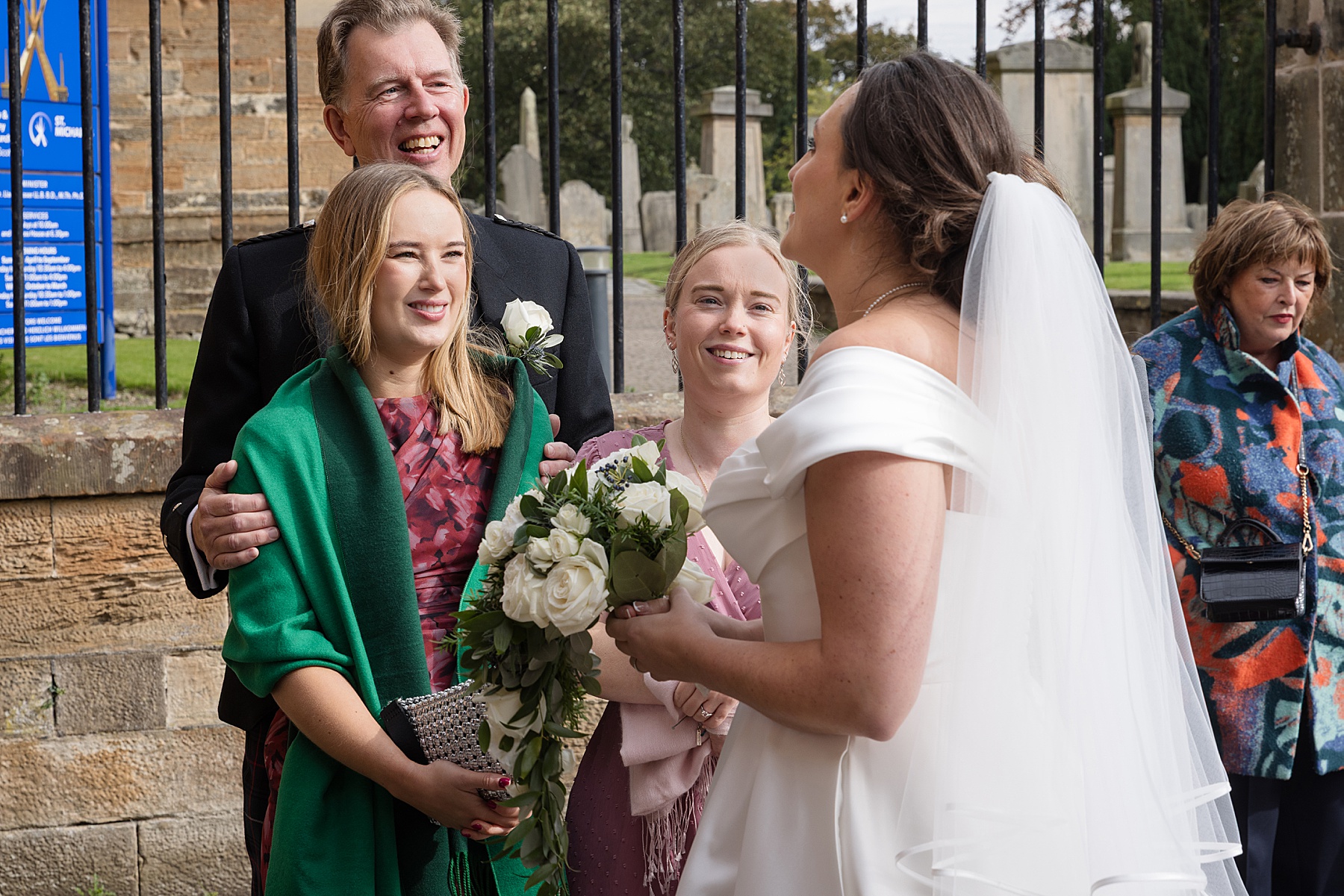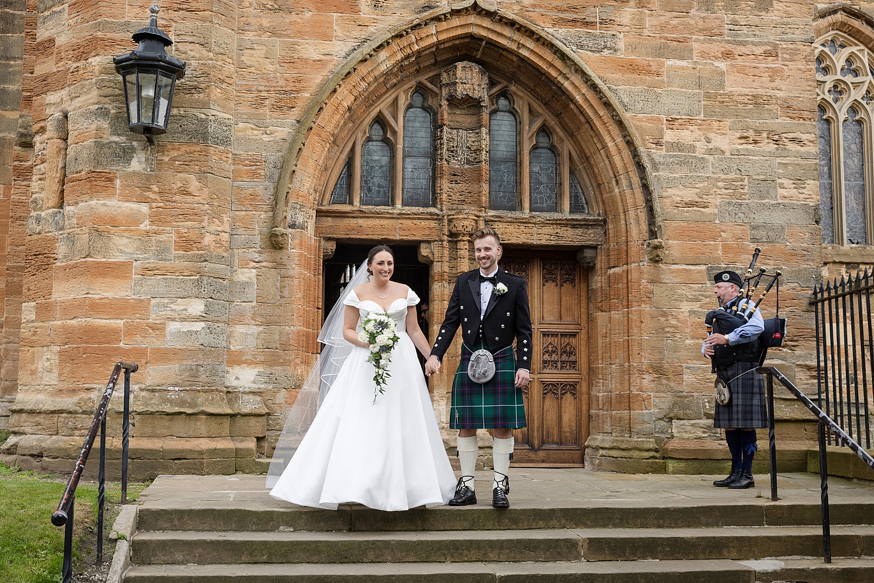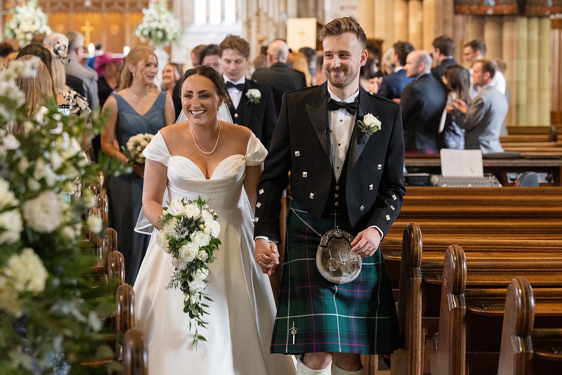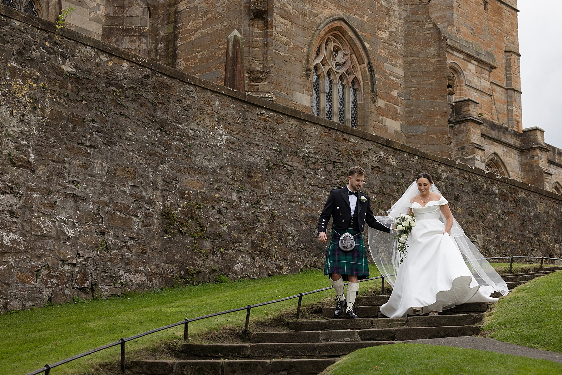 There were so many thoughtful personal touches throughout the day and family were at the heart of it all. Cat carried her Granny’s special-occasion hanky and wore Alex’s Grandma’s brooch . Sisters — Sarah, Eilidh, Megan, and Hannah — gave readings in the church (and also choreographed some epic dance moves!) while mums, Jennifer and Kay, stood proudly as witnesses.