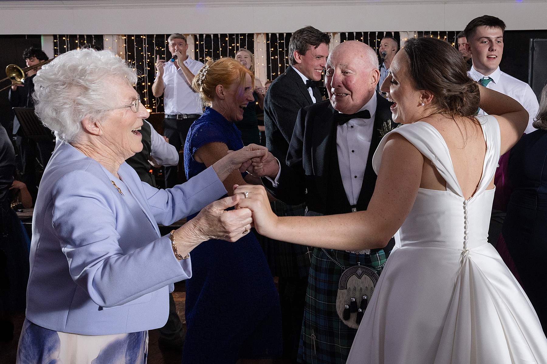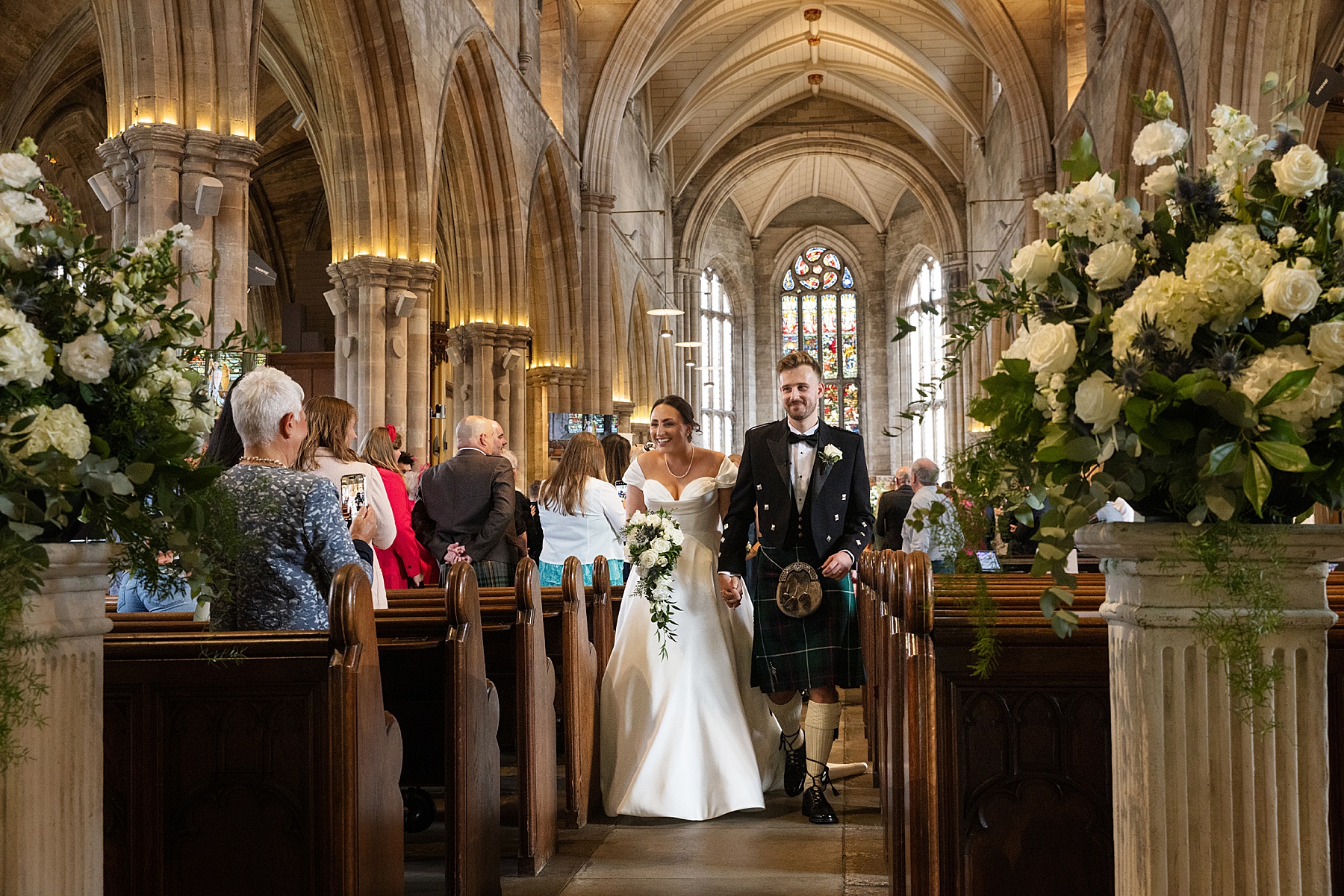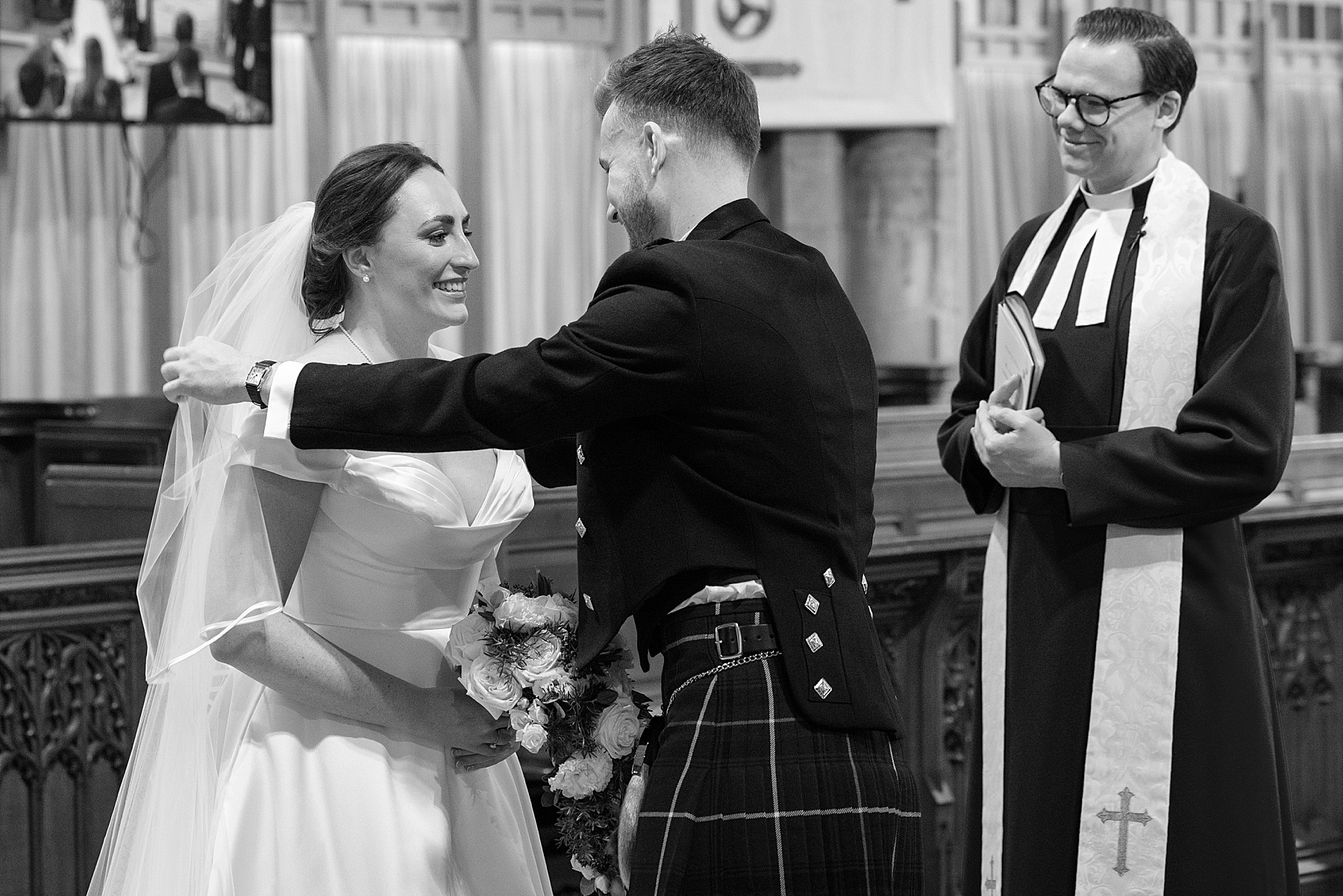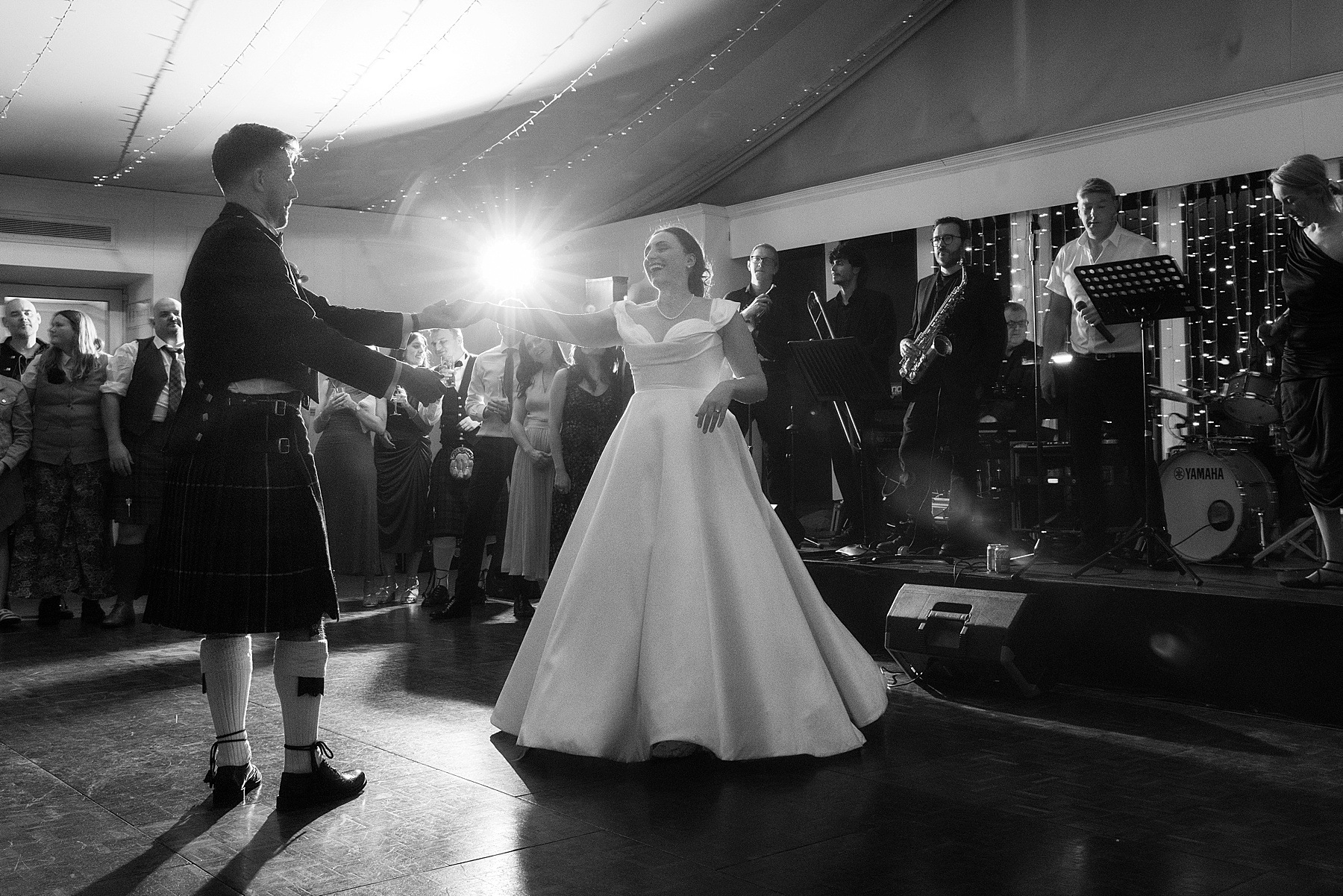 There were so many thoughtful personal touches throughout the day and family were at the heart of it all. Cat carried her Granny’s special-occasion hanky and wore Alex’s Grandma’s brooch . Sisters — Sarah, Eilidh, Megan, and Hannah — gave readings in the church (and also choreographed some epic dance moves!) while mums, Jennifer and Kay, stood proudly as witnesses.