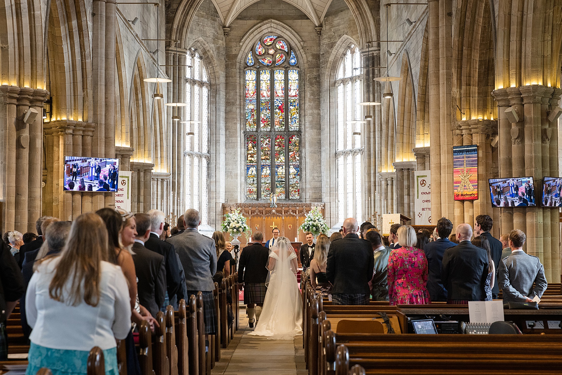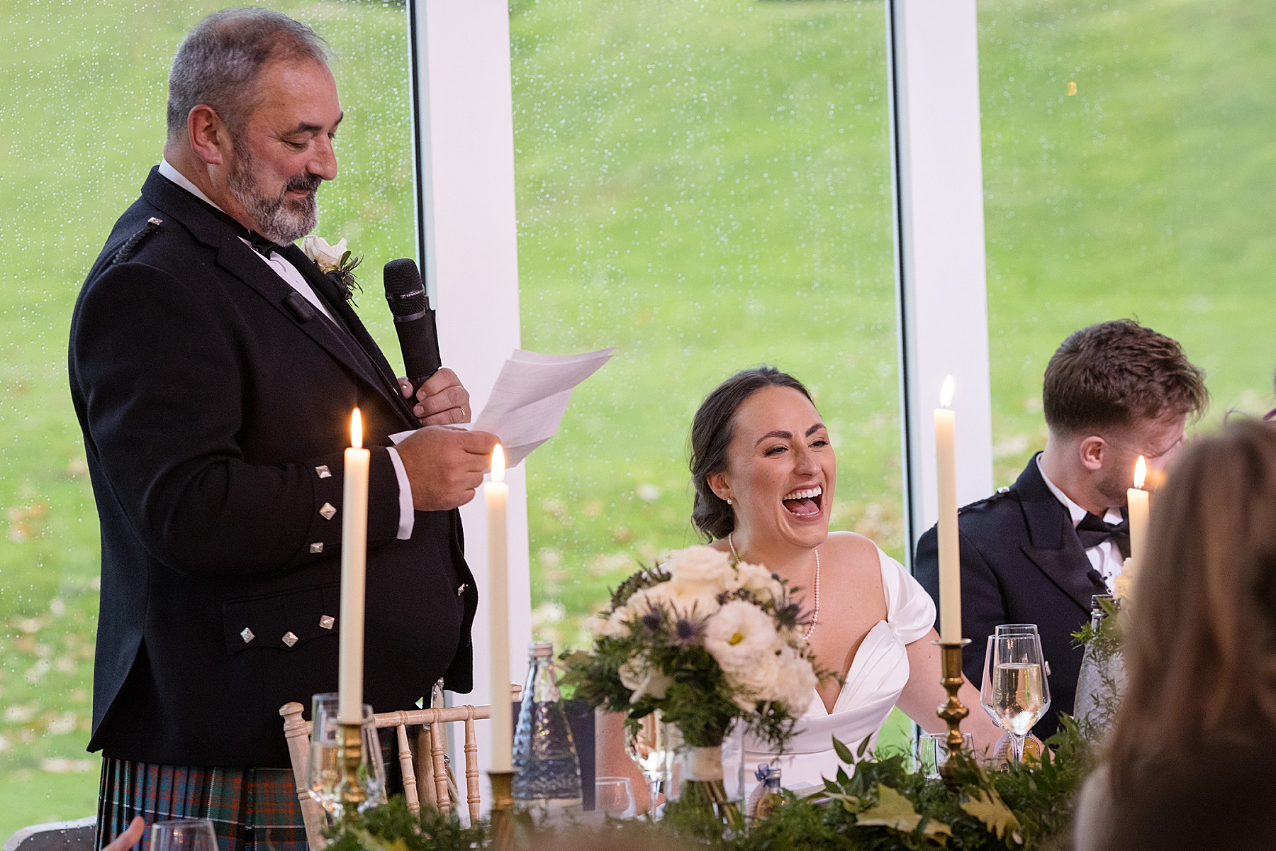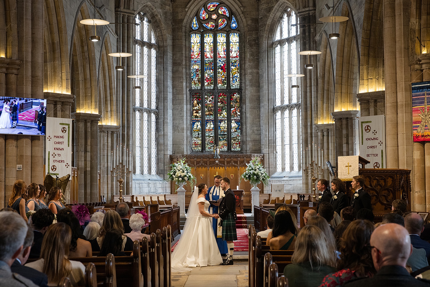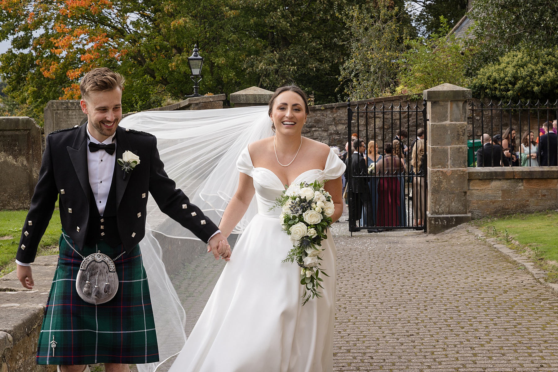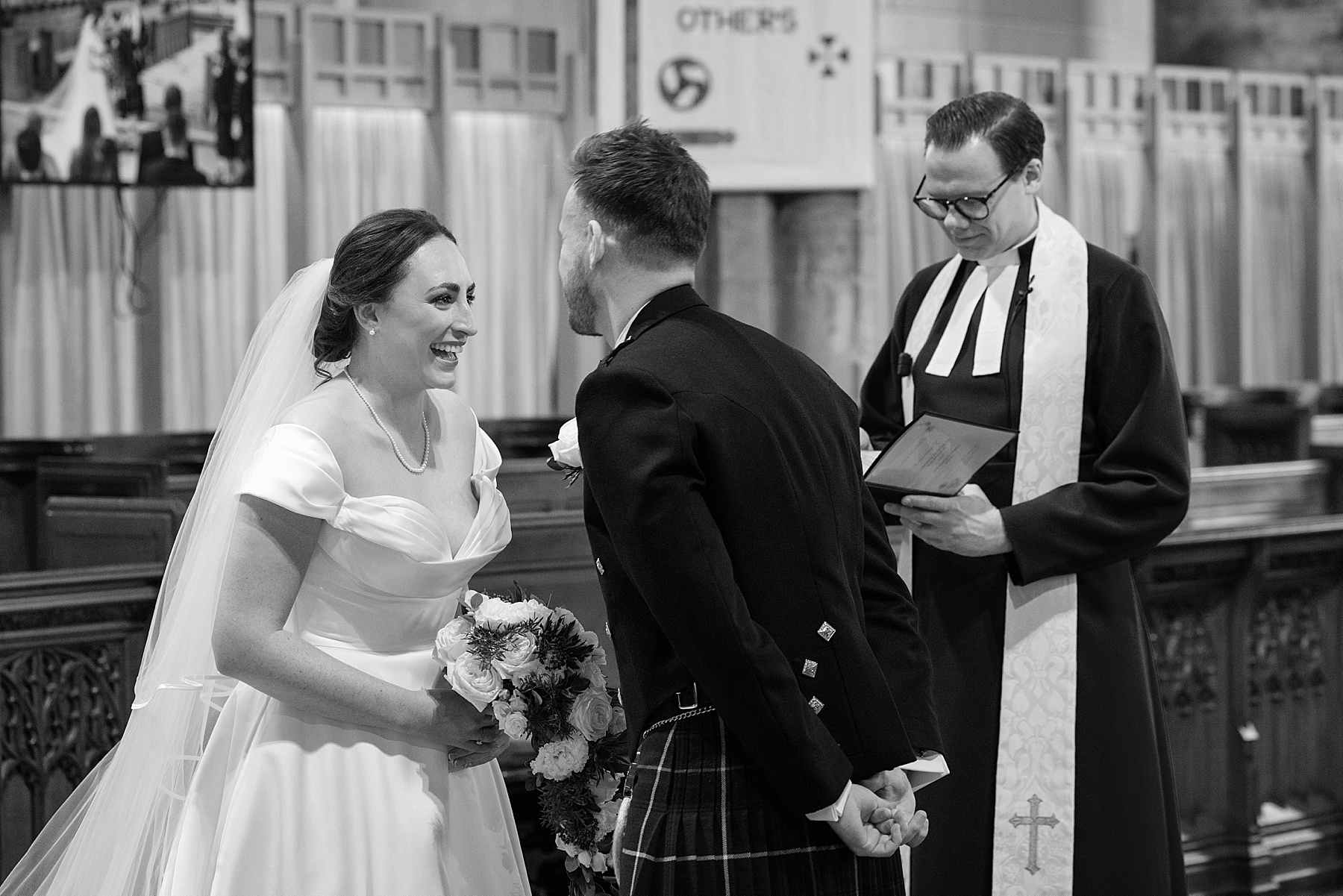 There were so many thoughtful personal touches throughout the day and family were at the heart of it all. Cat carried her Granny’s special-occasion hanky and wore Alex’s Grandma’s brooch . Sisters — Sarah, Eilidh, Megan, and Hannah — gave readings in the church (and also choreographed some epic dance moves!) while mums, Jennifer and Kay, stood proudly as witnesses.