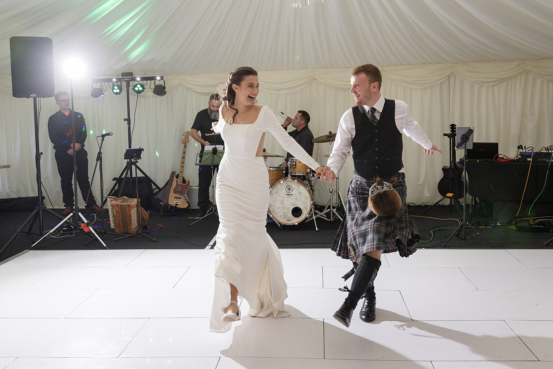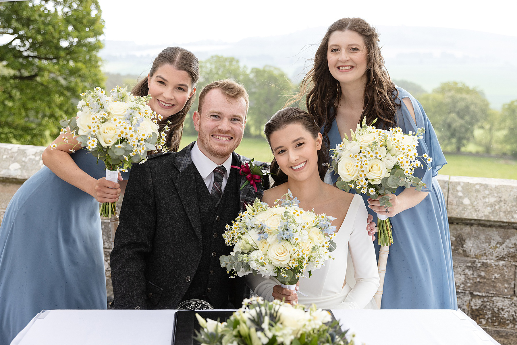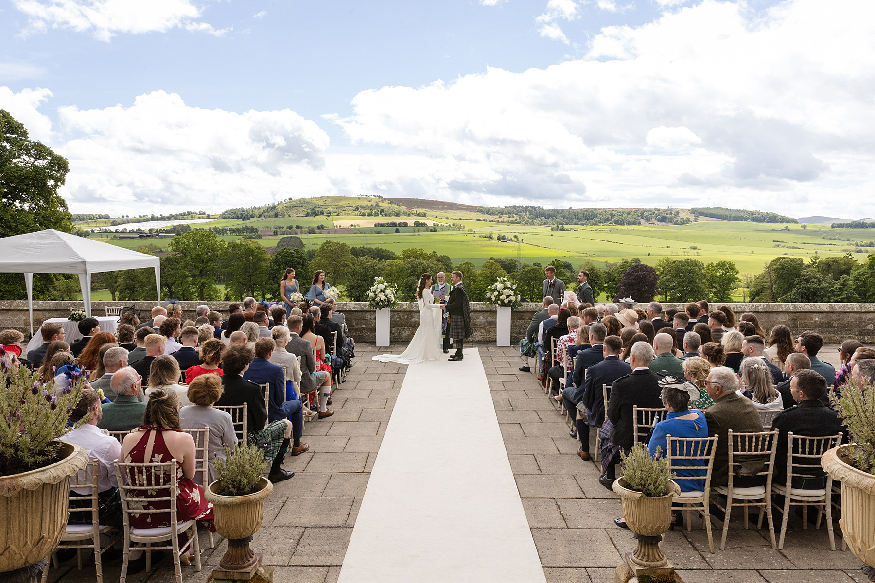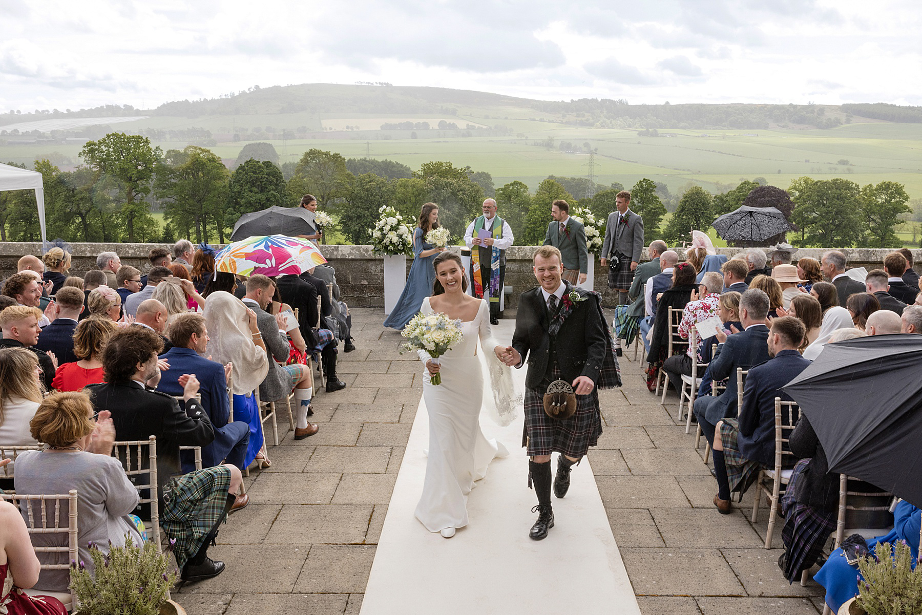 Alison and Ewan have so many highlights of their wedding day. Of course time with Sully is up there, but they also treasured their outdoor ceremony, from Alison’s epic aisle walk through to their vows, first kiss and quaich ceremony. With the added backdrop of the sky capturing all seasons, it was Scottish wedding magic right there.